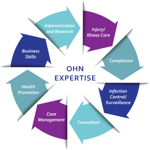 Occupational and environmental health nurses (OHNs) have a combined knowledge of health and business that they blend with healthcare expertise to balance the requirement for a safe and healthful work environment with a "Healthy" bottom line. Board certification demonstrates knowledge, proficiency and excellence in the field of occupational health. Click on the individual arrows below for more information on the roles of the OHN and download some information found on our Employer Flyer.
